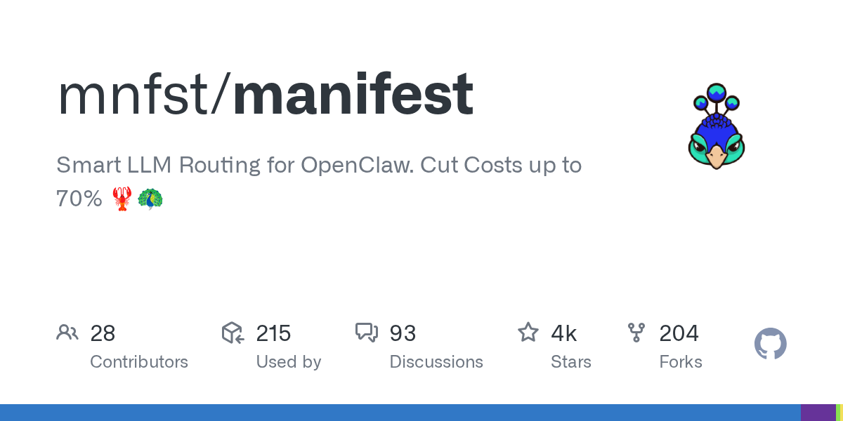 Manifest is experiencing explosive growth with +4,092 stars this week, positioning itself as a smart LLM routing solution for OpenClaw that promises up to 70% cost reduction. This TypeScript-based tool is capturing significant developer attention in the competitive AI infrastructure space, suggesting strong demand for cost-effective LLM management solutions.